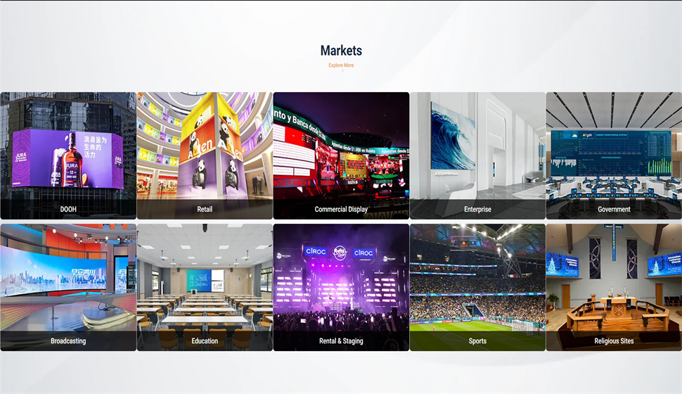 艾比森主业聚焦广告显示、舞台显示、商业显示、数据可视化显示、会议显示、创意显示、消费级显示等领域。产品远销美洲、欧洲、澳洲、亚洲、非洲等140多个国家和地区,目前已成功实施了60000多个应用实例,优秀产品案例包括好莱坞、迪士尼、环球影城、世界杯、奥运会、欧洲杯、NBA、纽约时代广场、各种大型媒体活动。单品牌显示产品出口额连续12年行业第一。